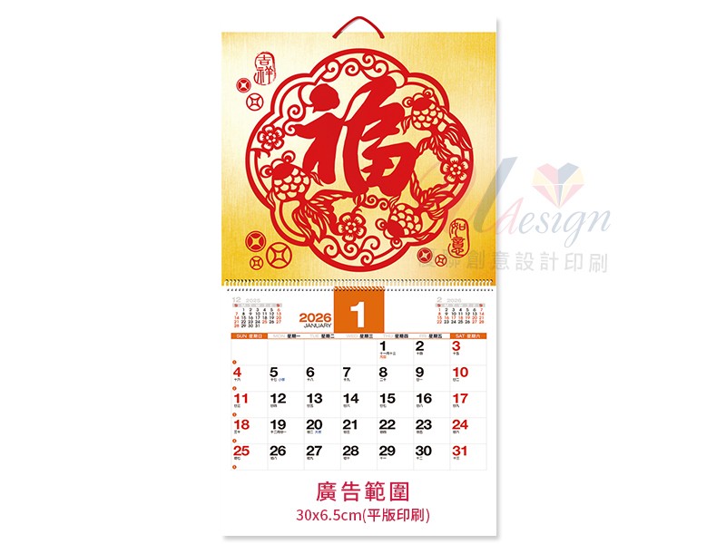 這款掛曆的公版特色主題與客製化廣告相結合,使其成為企業送禮的最佳選擇。公版主題提供了精美的中式設計,而客製化廣告則讓您能夠加入企業獨特的品牌信息。這種個性化的組合,不僅彰顯企業品味,也提升了贈品的價值和印象深度。